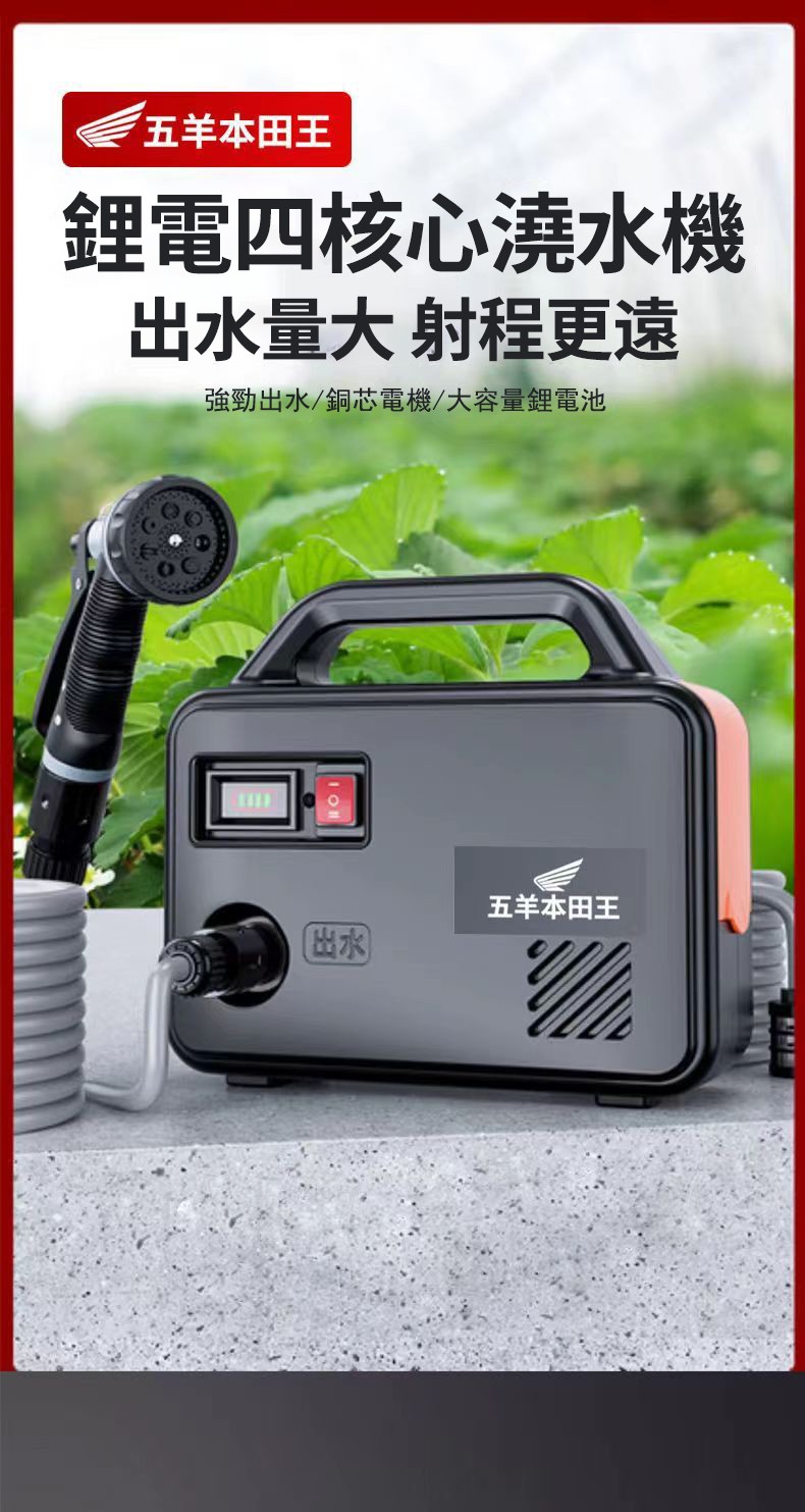 2分鐘前「日本進口」五羊本田王鋰電充電式抽水泵 全新一機升級,澆菜/打藥/洗車/灌溉輕鬆搞定‼️ 十年用不壞 - 【X15節雙電】電量顯示 强续航6小時【螺旋聚压大水流】+50米管+管架