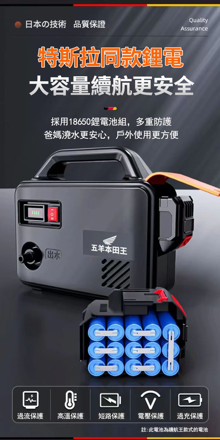 20分鐘前「日本進口」五羊本田王鋰電充電式抽水泵 全新一機升級,澆菜/打藥/洗車/灌溉輕鬆搞定‼️ 十年用不壞 - 【X15節雙電】電量顯示 强续航6小時【螺旋聚压大水流】+10米管