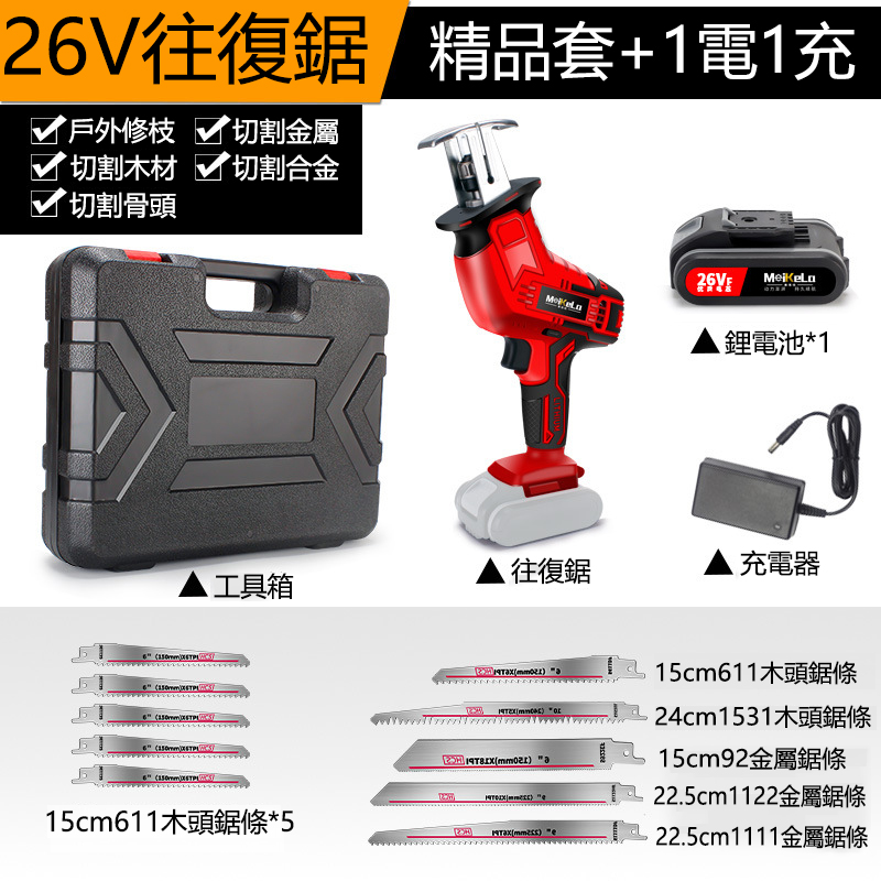 15分鐘前【德國精工鋰電鋸】鋼、鐵、磚頭、木材,統統都能鋸!續航久、充電快,方便攜帶,一機多用 - 26V德國精工往複鋸(機頭+1充1電)贈工具箱+5鋸條NT$1790