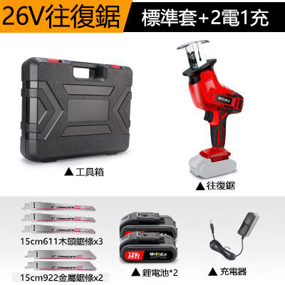 20分鐘前【德國精工鋰電鋸】鋼、鐵、磚頭、木材,統統都能鋸!續航久、充電快,方便攜帶,一機多用 - 26V德國精工往複鋸(機頭+1充2電)贈工具箱+5鋸條NT$2290