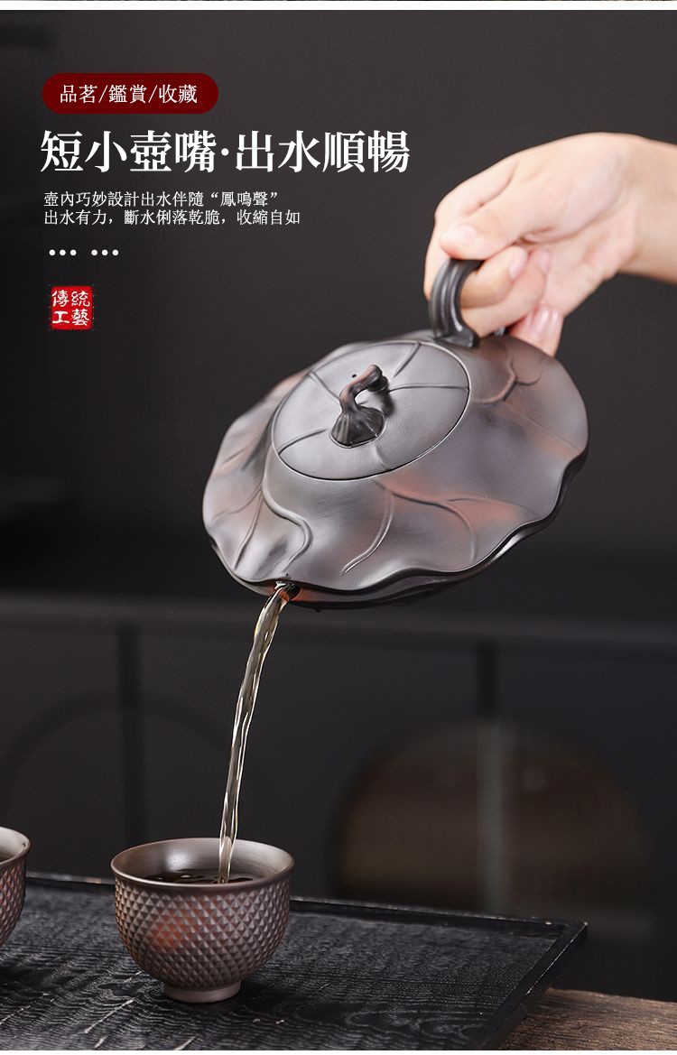 15分鐘前正宗原礦紫陶浮雕富甲天下荷韻 • 荷花壺┃350cc大容量紫砂鳳鳴壺 純手工大師范明偉匠心之作,泡茶更醇香! - 紫陶富甲天下荷葉鳳鳴壺