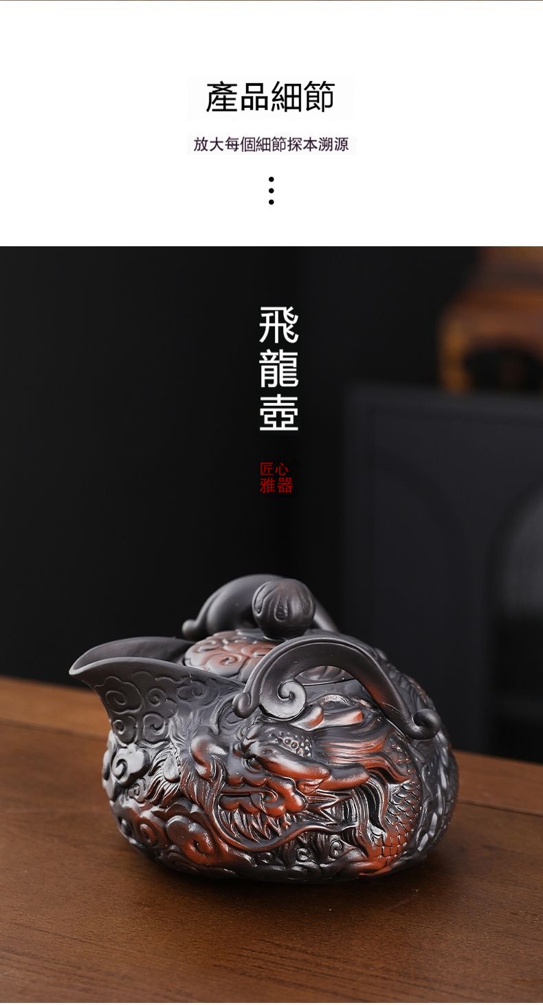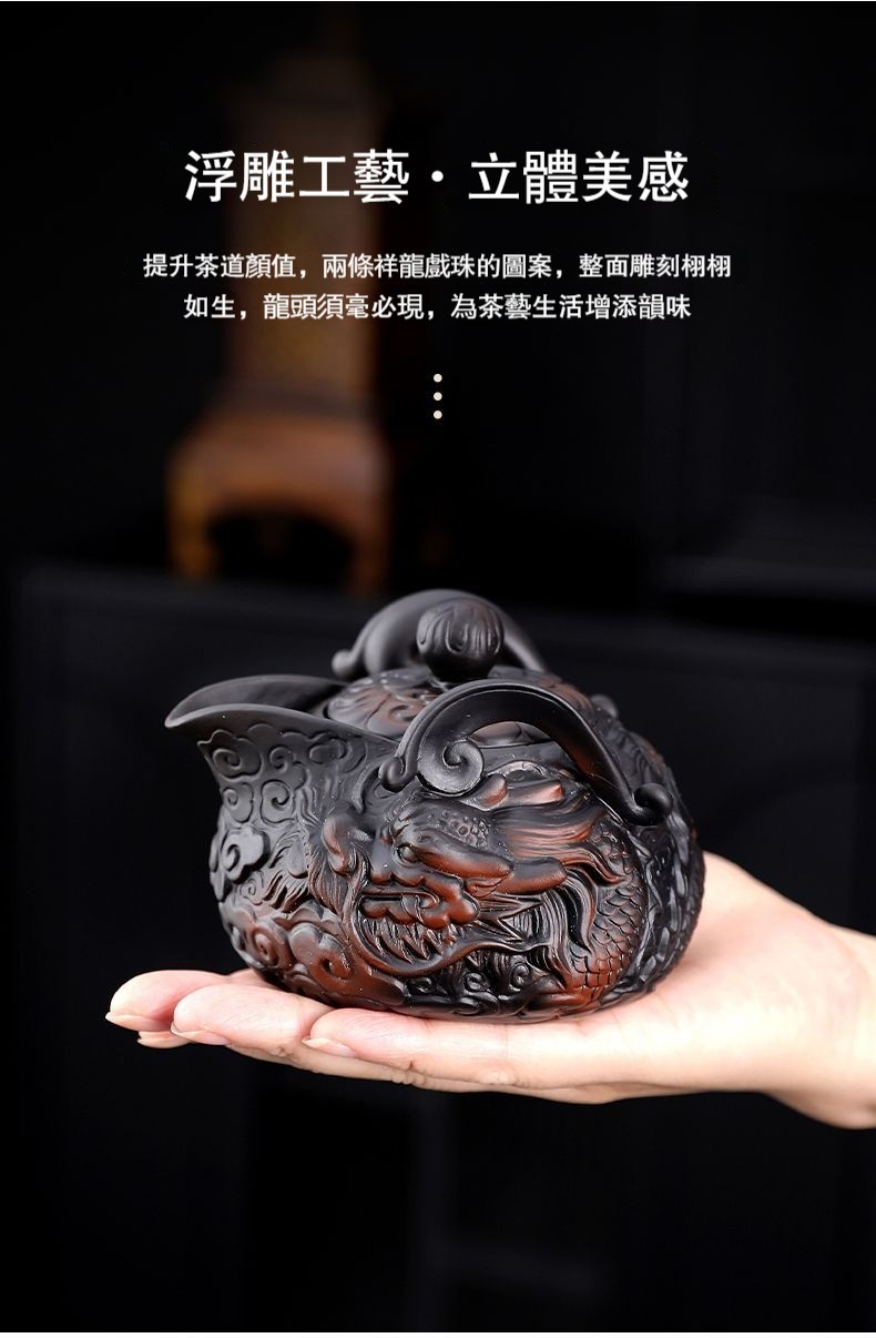 經典傳承・匠心打造|【大師純手工紫陶鳳鳴壺】復古跳刀紋漢瓦壺(一壺兩杯)・黃金大容量300cc + 球孔過濾,鳴音設計顯格調