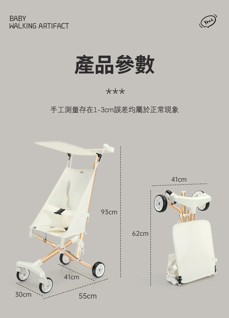 2分鐘前【能上飛機的嬰兒推車】新款鋁合金嬰兒推車 輕便可折疊 出行易攜帶 - 鎏金白輕便折疊嬰兒推車