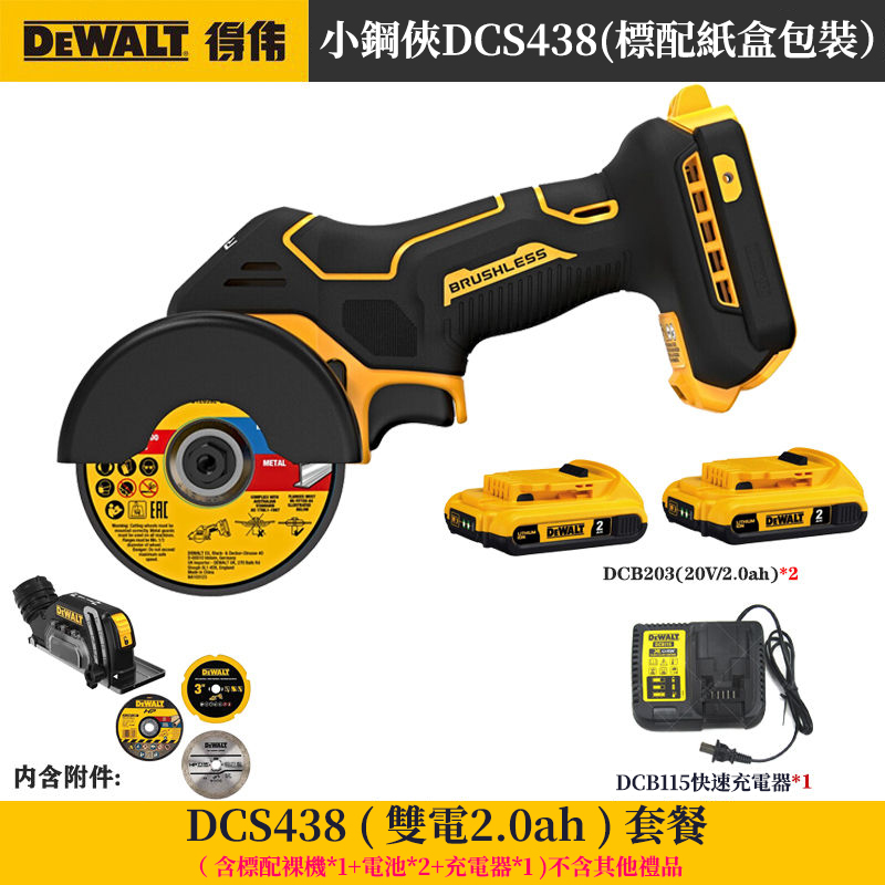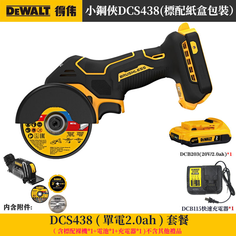 20分鐘前得偉「DeWALT」20V無刷角磨機DCS438小鋼俠 金屬、木材、水力、塑膠管、瓷磚都可切割 單手一機完成! - 小鋼炮【DCS438】两電一充