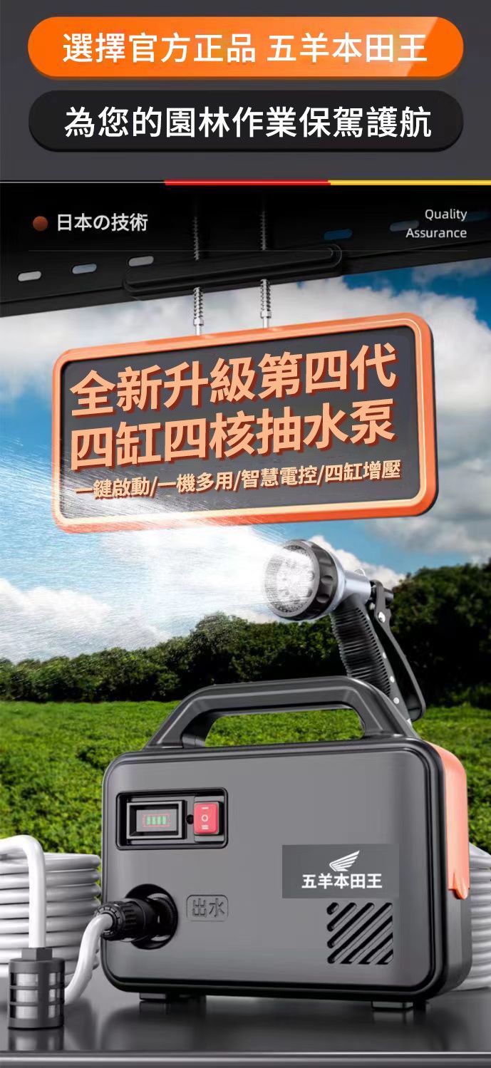 25分鐘前「日本進口」五羊本田王鋰電充電式抽水泵 全新一機升級,澆菜/打藥/洗車/灌溉輕鬆搞定‼️ 十年用不壞 - 【X15節雙電】電量顯示 强续航6小時【螺旋聚压大水流】+50米管+管架