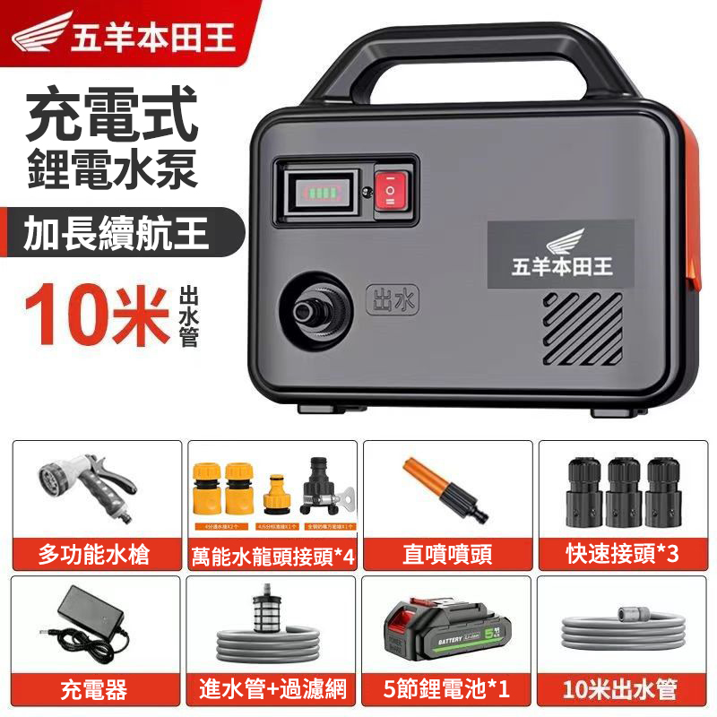 5分鐘前「日本進口」五羊本田王鋰電充電式抽水泵 全新一機升級,澆菜/打藥/洗車/灌溉輕鬆搞定‼️ 十年用不壞 - 【X10節單電】電量顯示 强续航2小時【螺旋聚压大水流】+10米管