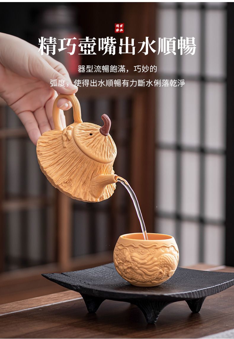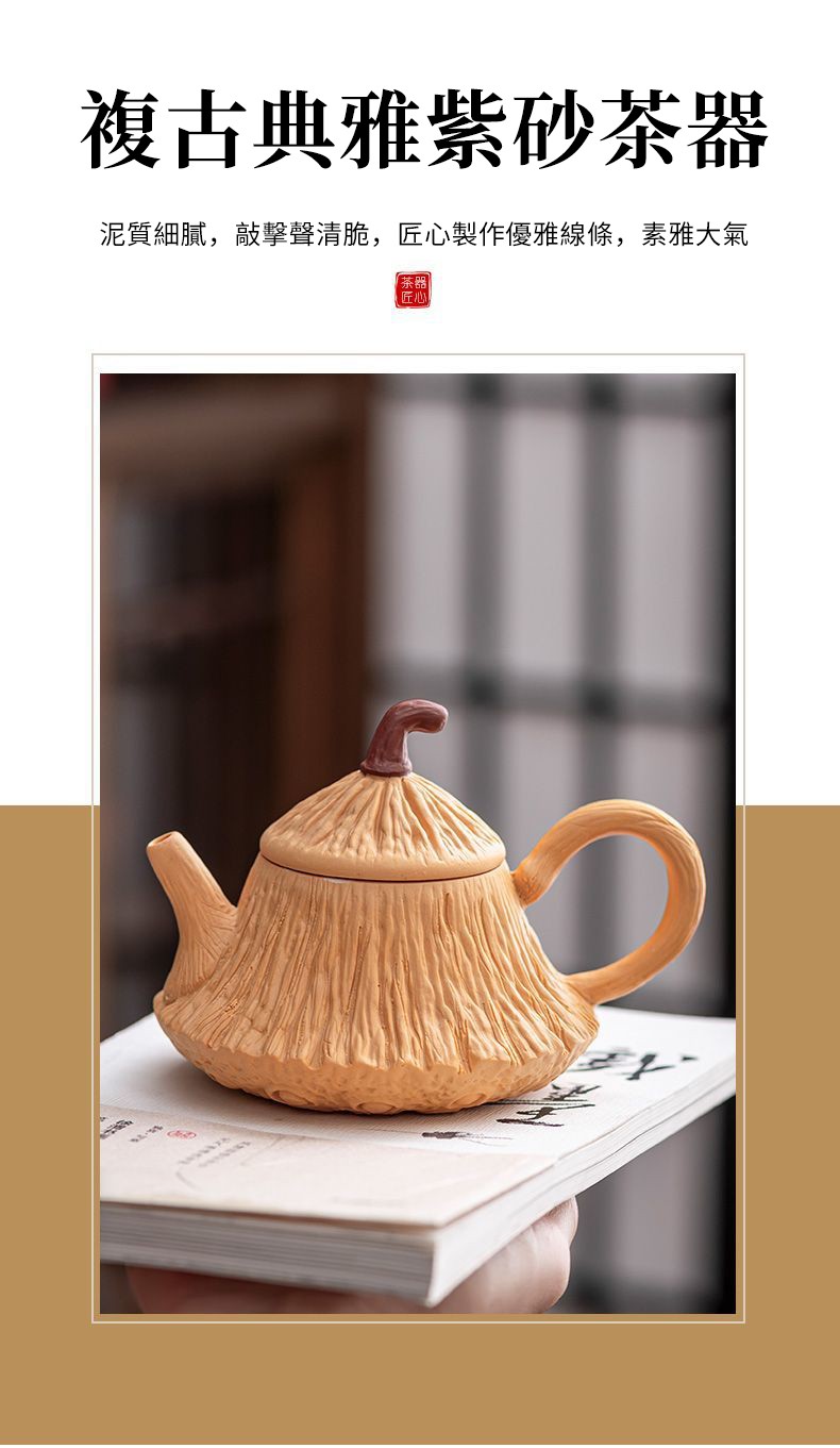 經典傳承・匠心打造|【大師純手工紫陶鳳鳴壺】復古跳刀紋漢瓦壺(一壺兩杯)・黃金大容量300cc + 球孔過濾,鳴音設計顯格調