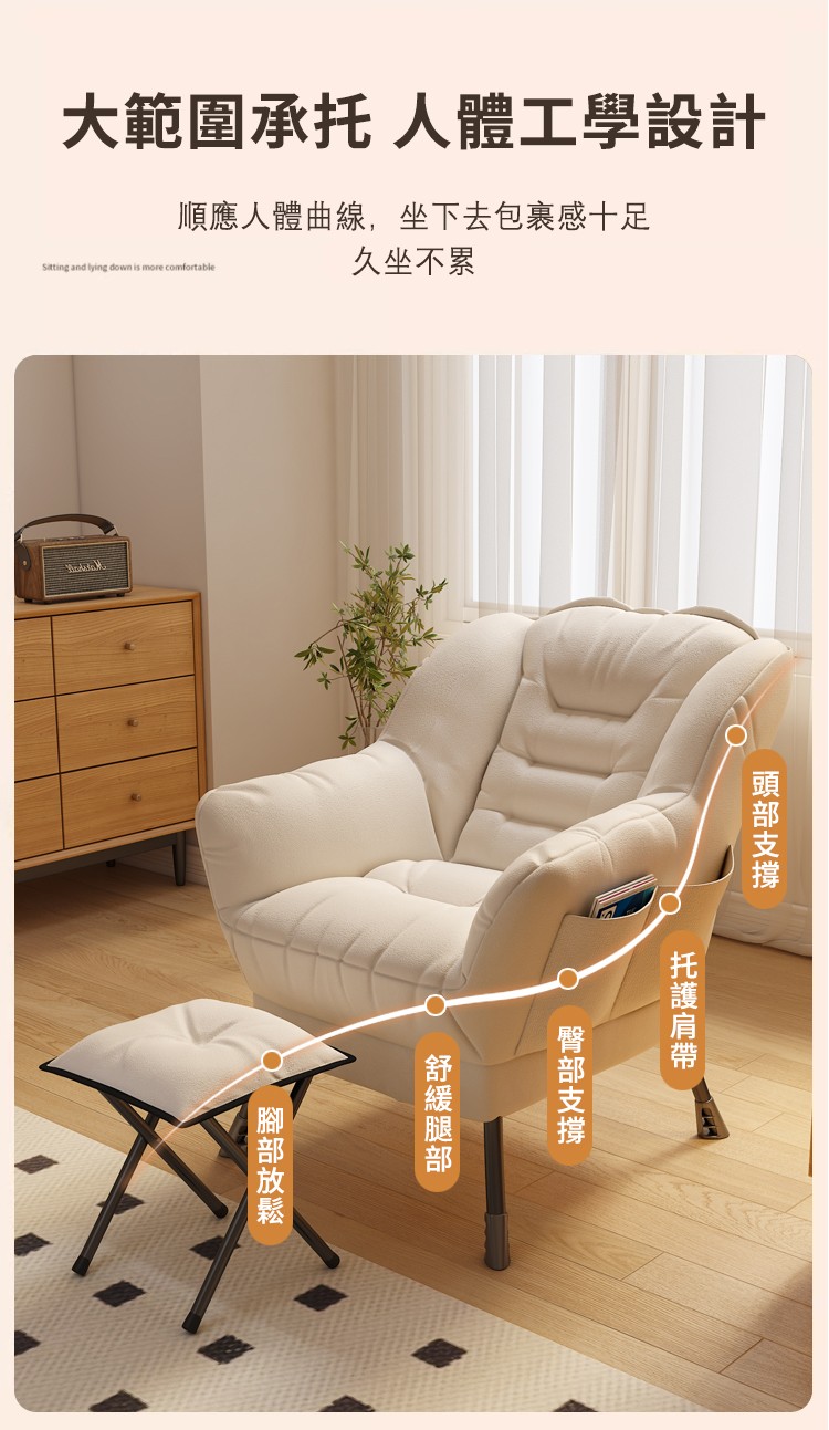 20分鐘前H&D東稻家居-台灣國民家具品牌【春季成家正式開跑啦】懶人沙發躺椅 五折起!完美搭配休閒臥室與陽台,讓您享受放鬆時光 - 升級加厚寶寶棉+腳踏 NT$2580