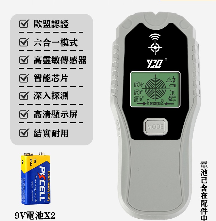 15分鐘前【新品秒殺】雅川崎高精準定位6合1墻體探測儀,金屬/電線/木材統統可以測,讓您鑽孔無憂 - 6合1墻體探測儀+專用電池1個(測金屬/電線/木材)