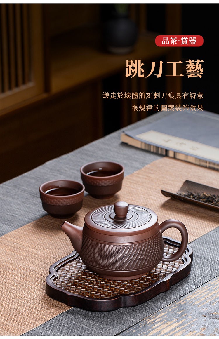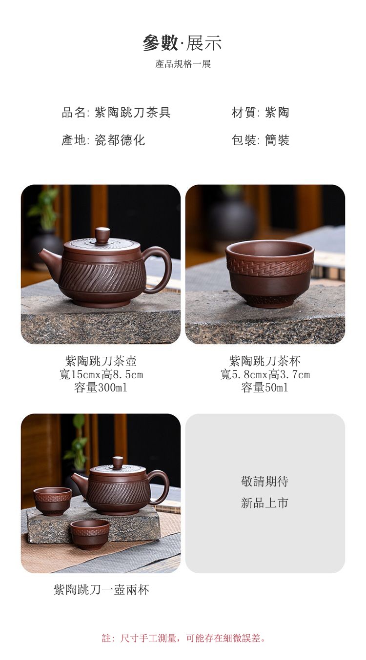 15分鐘前經典傳承・匠心打造|【大師純手工紫陶鳳鳴壺】復古跳刀紋漢瓦壺(一壺兩杯)・黃金大容量300cc + 球孔過濾,鳴音設計顯格調 - 紫陶跳刀壺【一壺兩杯】