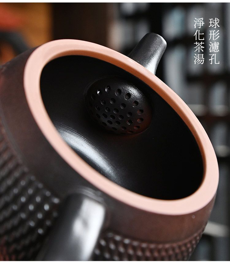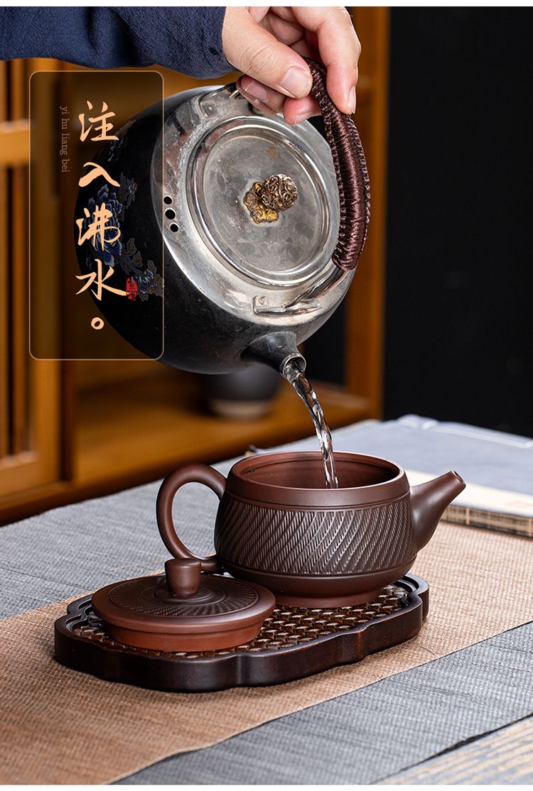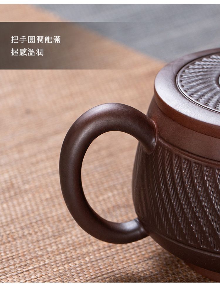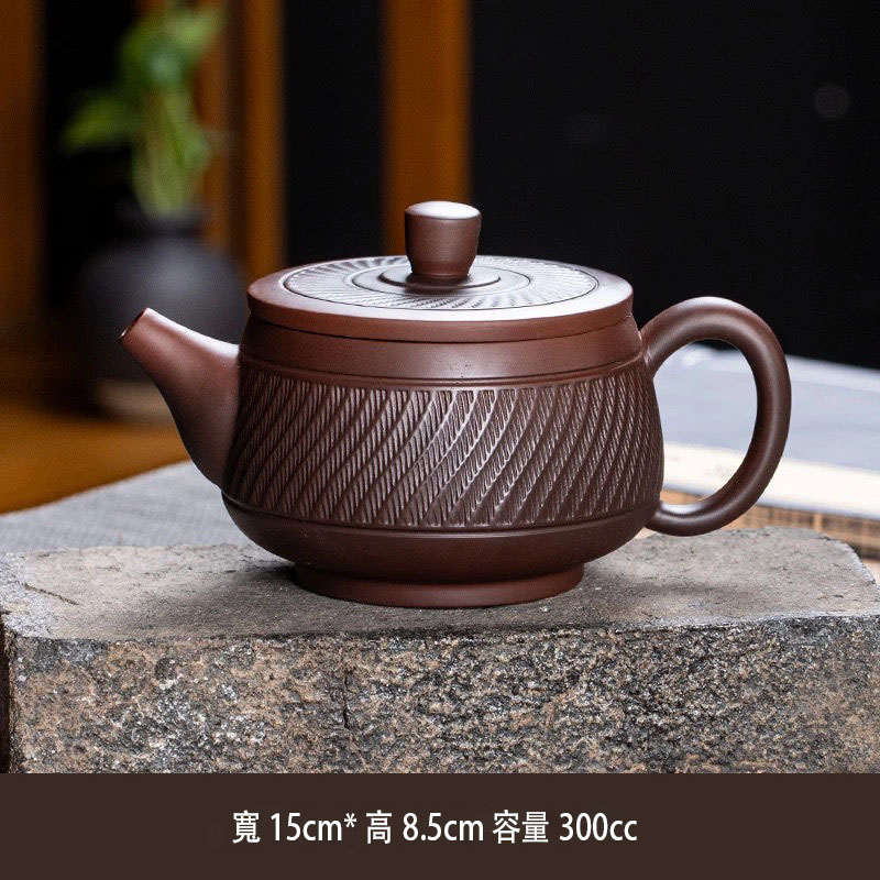 5分鐘前經典傳承・匠心打造|【大師純手工紫陶鳳鳴壺】復古跳刀紋漢瓦壺(一壺兩杯)・黃金大容量300cc + 球孔過濾,鳴音設計顯格調 - 紫陶漢瓦壺【單壺】
