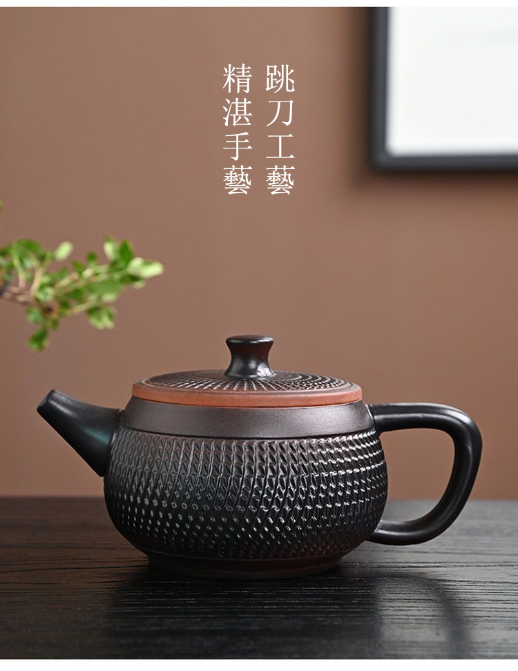 12分鐘前經典傳承・匠心打造|【大師純手工紫陶鳳鳴壺】復古跳刀紋漢瓦壺(一壺兩杯)・黃金大容量300cc + 球孔過濾,鳴音設計顯格調 - 紫陶漢瓦壺【單壺】