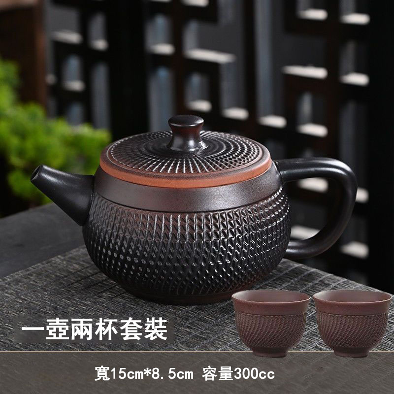 4分鐘前經典傳承・匠心打造|【大師純手工紫陶鳳鳴壺】復古跳刀紋漢瓦壺(一壺兩杯)・黃金大容量300cc + 球孔過濾,鳴音設計顯格調 - 紫陶漢瓦壺【單壺】