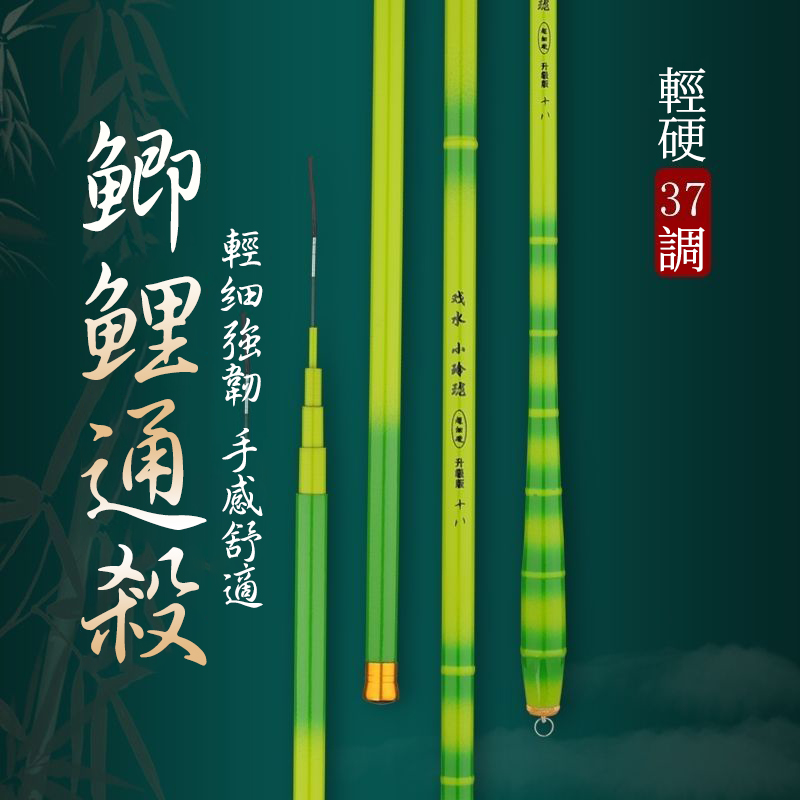 20分鐘前【新上市 買一送一】小玲瓏魚竿,37調綠竹魚竿 超細青竹釣手竿 - (買一送一)18尺(5.4m)+13尺(3.9m)+竿梢 NT$1690