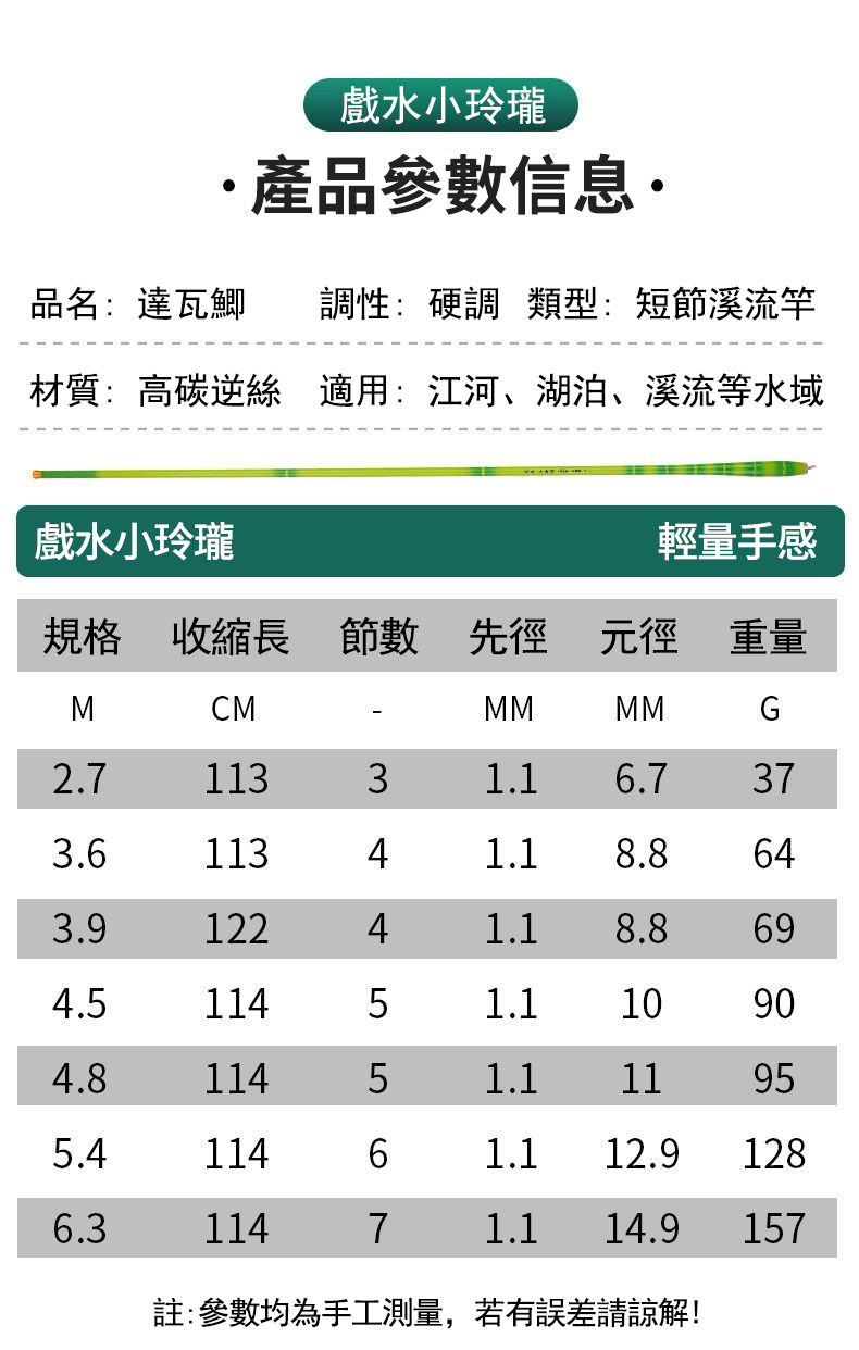 12分鐘前【新上市 買一送一】小玲瓏魚竿,37調綠竹魚竿 超細青竹釣手竿 - (買一送一)21尺(6.3m)+18尺(5.4m)+竿梢NT$1890