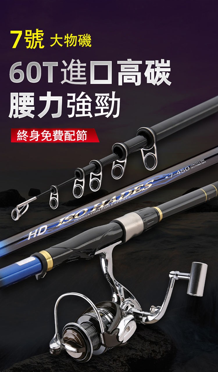 11分鐘前【日本進口,送超級大禮包】哈迪斯19調7號手海兩用磯釣竿 - 19釣5.4米(18尺)竿[金屬漁輪+禮包]