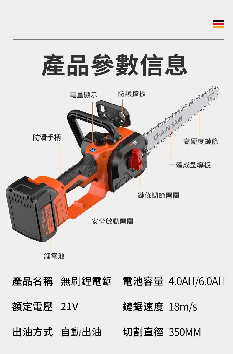 7分鐘前千元直降【東林官方 回饋國人】國民品牌 全新東林12吋鋰電伐木鋸 下訂僅需1980元!最後88組(保固一年 損壞包退換) - 12吋鋰電鋸(10節鋰電池)一電一充