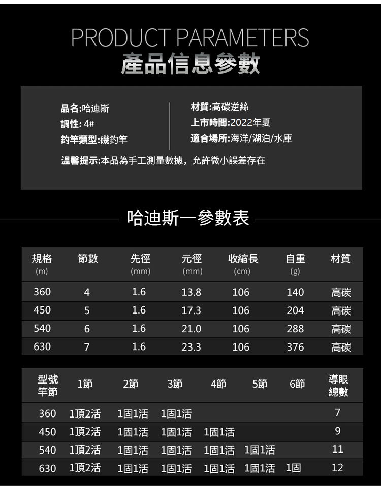 4分鐘前專業釣手都愛不釋手!【日本ハデス】HADES4# 長節磯竿 - 12尺(360)裸竿+竿稍+導環