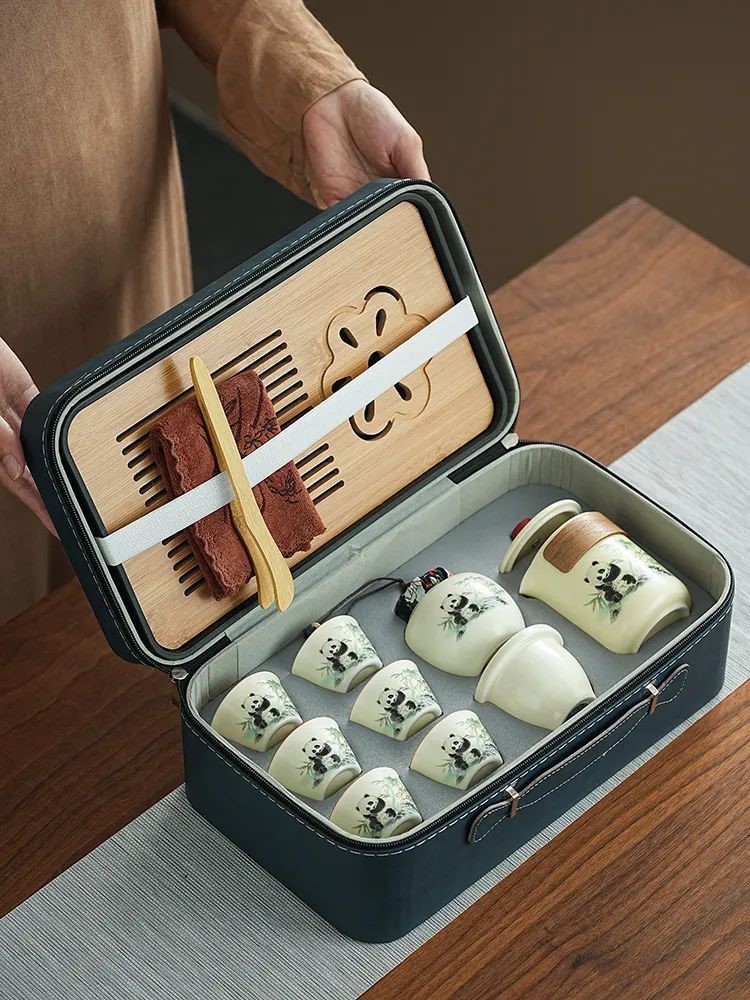 見慣了常見的天青色,今天給推薦大家與眾不同的:“熊貓·黃汝旅行茶具套裝”