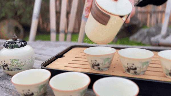 紋飾生動、栩栩如生的國寶熊貓戲竹圖案,更是為品茗增添一分趣味。