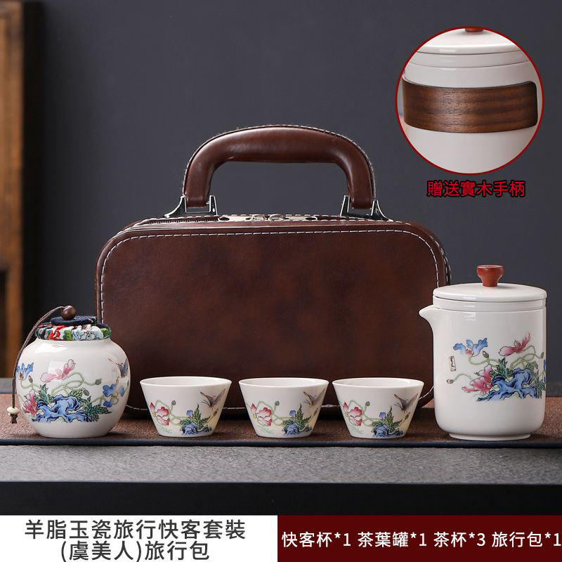 這套質樸淡雅的茶具套裝採用皮包式旅行包進行收納,整體小巧精緻,手提方便。