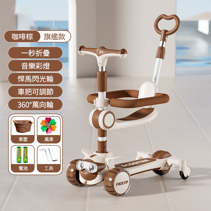 7分鐘前【降價熱賣】新款兒童多功能滑板車,1到14歲都能玩!!陪伴寶寶成長 快樂整個童年! - 咖啡棕【送車筐+風車】
