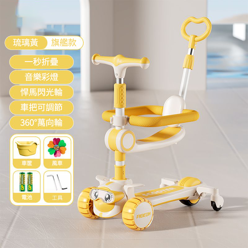2分鐘前【降價熱賣】新款兒童多功能滑板車,1到14歲都能玩!!陪伴寶寶成長 快樂整個童年! - 琉璃黃【送車筐+風車】