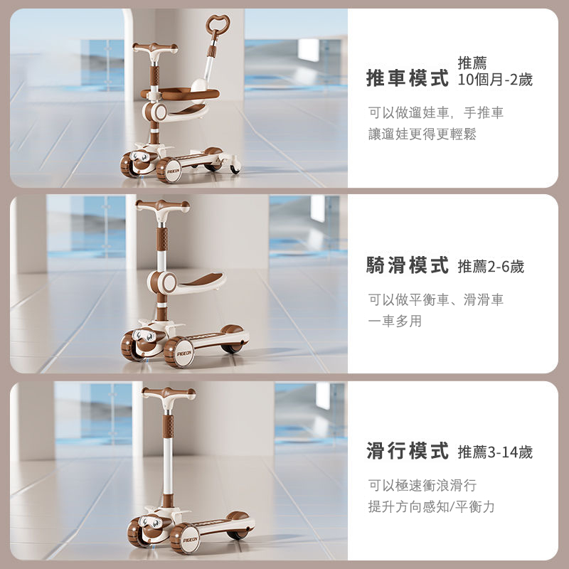 12分鐘前【降價熱賣】新款兒童多功能滑板車,1到14歲都能玩!!陪伴寶寶成長 快樂整個童年! - 咖啡棕【送車筐+風車】
