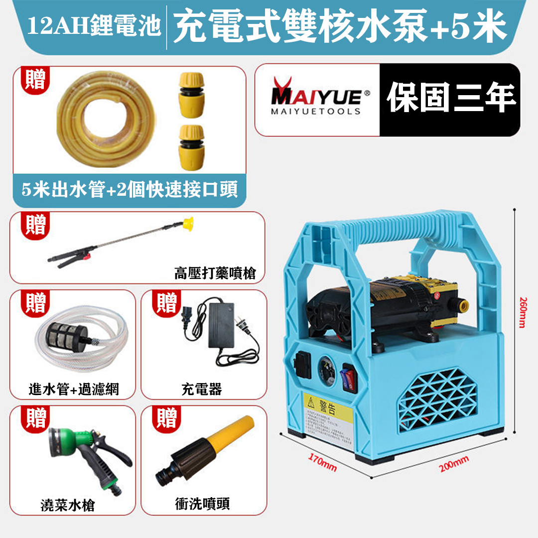 2分鐘前全台首推,好評爆滿!德國MAIYUE鋰電充電式抽水泵,澆菜/打藥/洗車/灌溉,輕鬆都能搞定‼️ - 12A鋰電雙核水泵[使用時長1小時](贈5米水管)