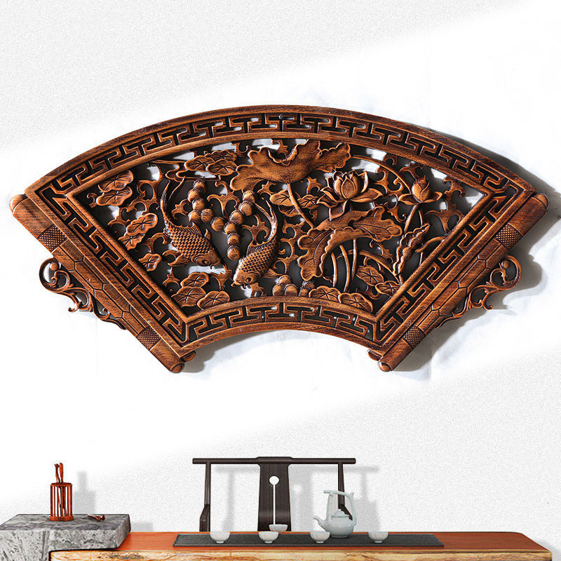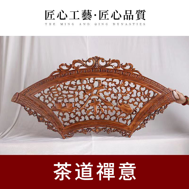5分鐘前年到!福到! [東陽木雕] 傳承千年木上巧思——天然香樟木雕刻掛件 久放升值 家中旺!年年順! - 典藏款-扇形80*40cm---NT$2480