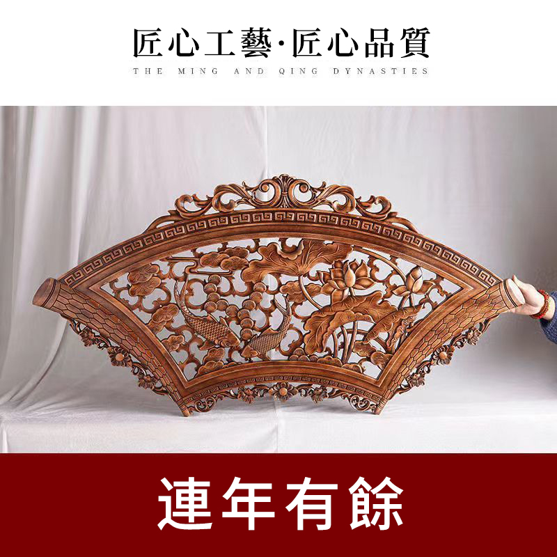 2分鐘前年到!福到! [東陽木雕] 傳承千年木上巧思——天然香樟木雕刻掛件 久放升值 家中旺!年年順! - 典藏款-扇形80*40cm---NT$2480