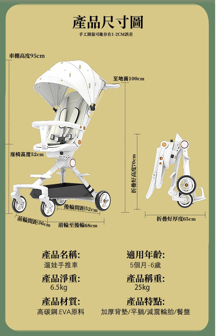 5分鐘前好康來襲 【遛娃好幫手】可坐可躺手推車 輕便可折疊 0-5歲都適用 - 【經典款】+遮陽帘+餐盤腳托+禮品