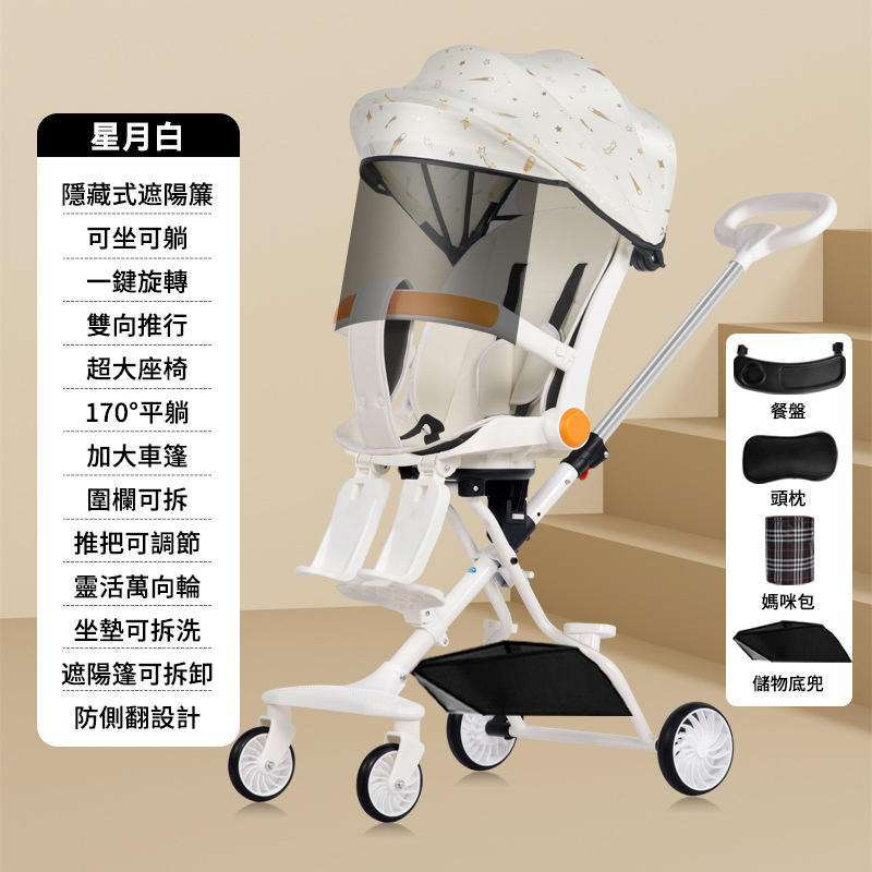 2分鐘前好康來襲 【遛娃好幫手】可坐可躺手推車 輕便可折疊 0-5歲都適用 - 【豪華款】+可坐可躺+遮陽帘+餐盤腳托+禮品