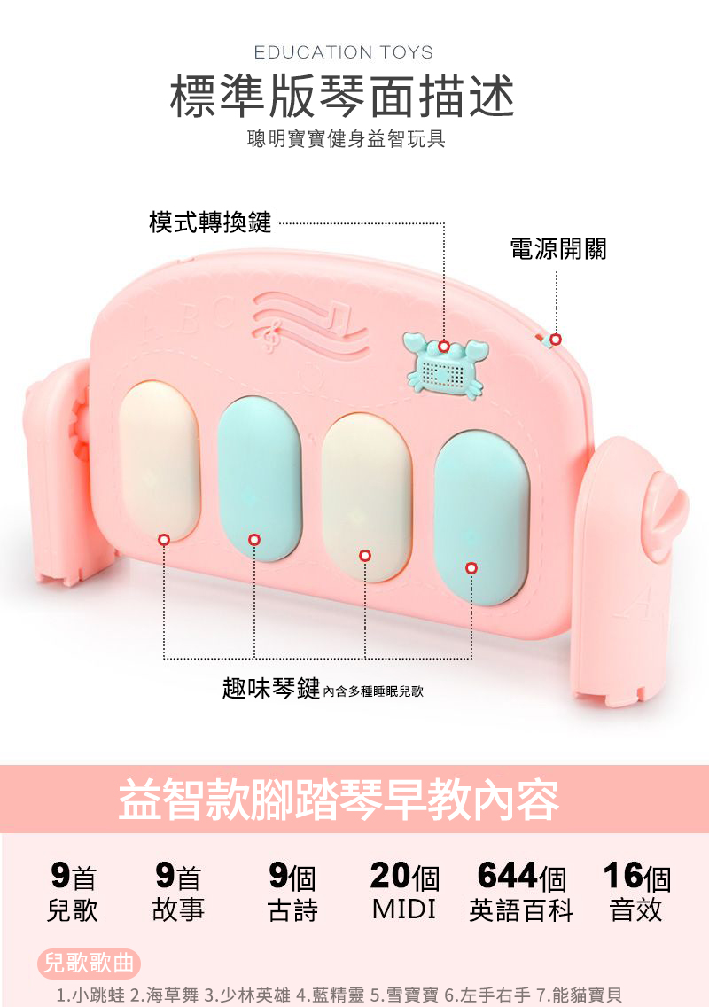 5分鐘前【破價預警】【寶寶成長特惠】0-1歲寶寶的神奇玩具-健身架音樂腳踏琴玩具,益智啟蒙好幫手! 讓寶寶從此放下手機、iPad! - 旋律款【送充電】鋼琴曲400內容+夜燈飛機+護欄
