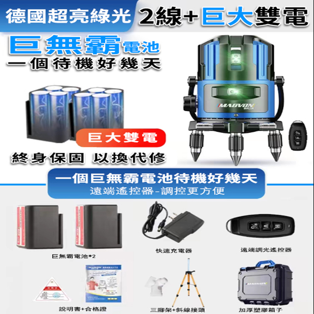 25分鐘前熱銷破萬件!戶外清晰可見【德國MAOVON】歐司朗綠光2/3/5線鐳射儀 - 【2線】巨大雙電+三腳架 +遙控 NT$2650