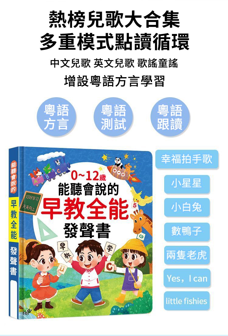 12分鐘前【二年質保 I 防水耐斯】會說話的早期教育有聲書0-12歲中英粵三語兒童早期教育啟蒙學習手指點讀書(送充電線) - 升級款【中英粵三語80000+讀物】