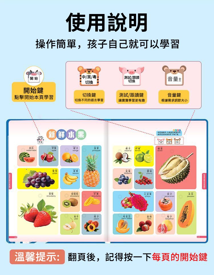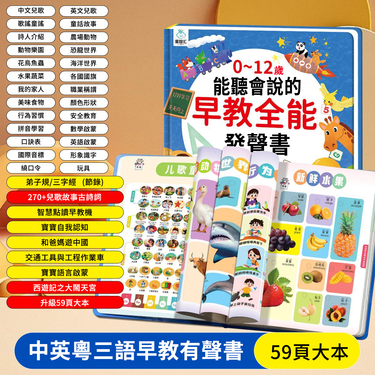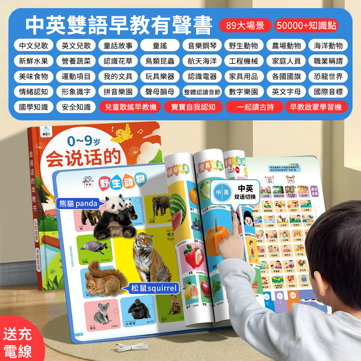 2分鐘前【二年質保 I 防水耐斯】會說話的早期教育有聲書0-12歲中英粵三語兒童早期教育啟蒙學習手指點讀書(送充電線) - 常規款【啟蒙早教】15主題800內容