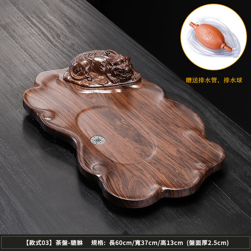 25分鐘前【天然實木】黑檀木雕刻功夫茶盤組|中式茶具套裝|實木泡茶盤 擺設收藏兩用 - 招財貔貅60*37cm【送排水管】