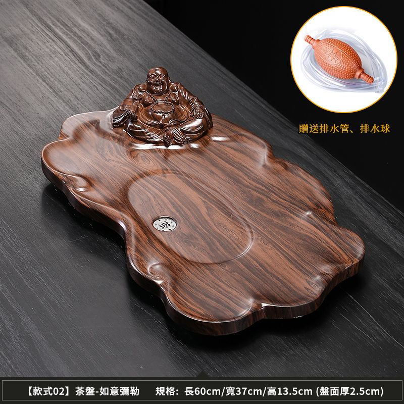 半小時前【天然實木】黑檀木雕刻功夫茶盤組|中式茶具套裝|實木泡茶盤 擺設收藏兩用 - 如意彌勒60*37cm【送排水管】