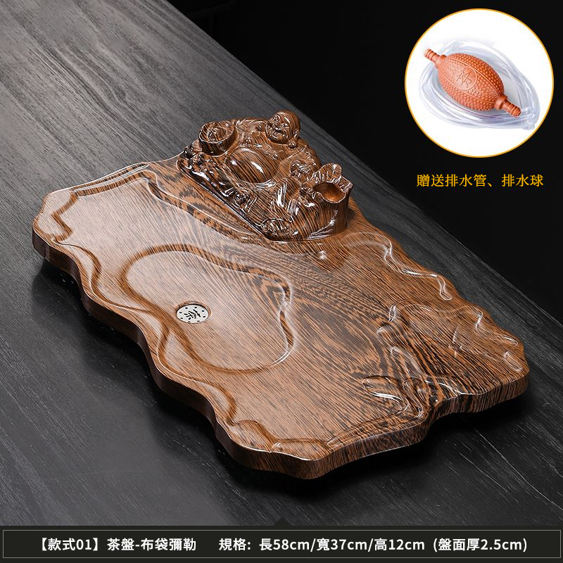 15分鐘前【天然實木】黑檀木雕刻功夫茶盤組|中式茶具套裝|實木泡茶盤 擺設收藏兩用 - 布袋彌勒58*37cm【送排水管】